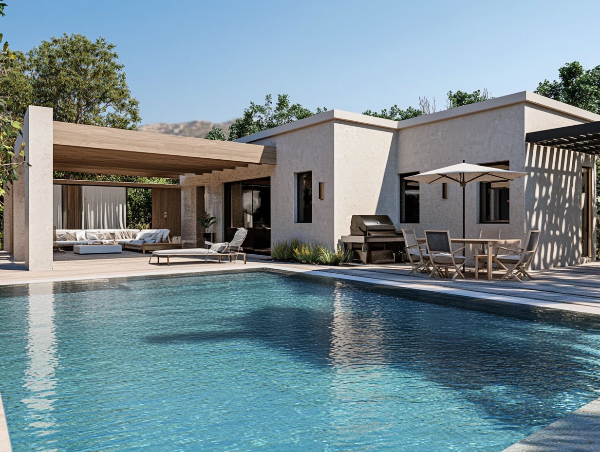 חיבור בין הכפרי למודרני ובין הפנים לחוץ תוך שילוב ייחודי של חומרים כמו עץ, אבן ואור טבעי.